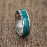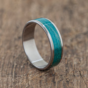 • Handgefertigter Bugholzring aus Titan mit recyceltem Skateboardholz