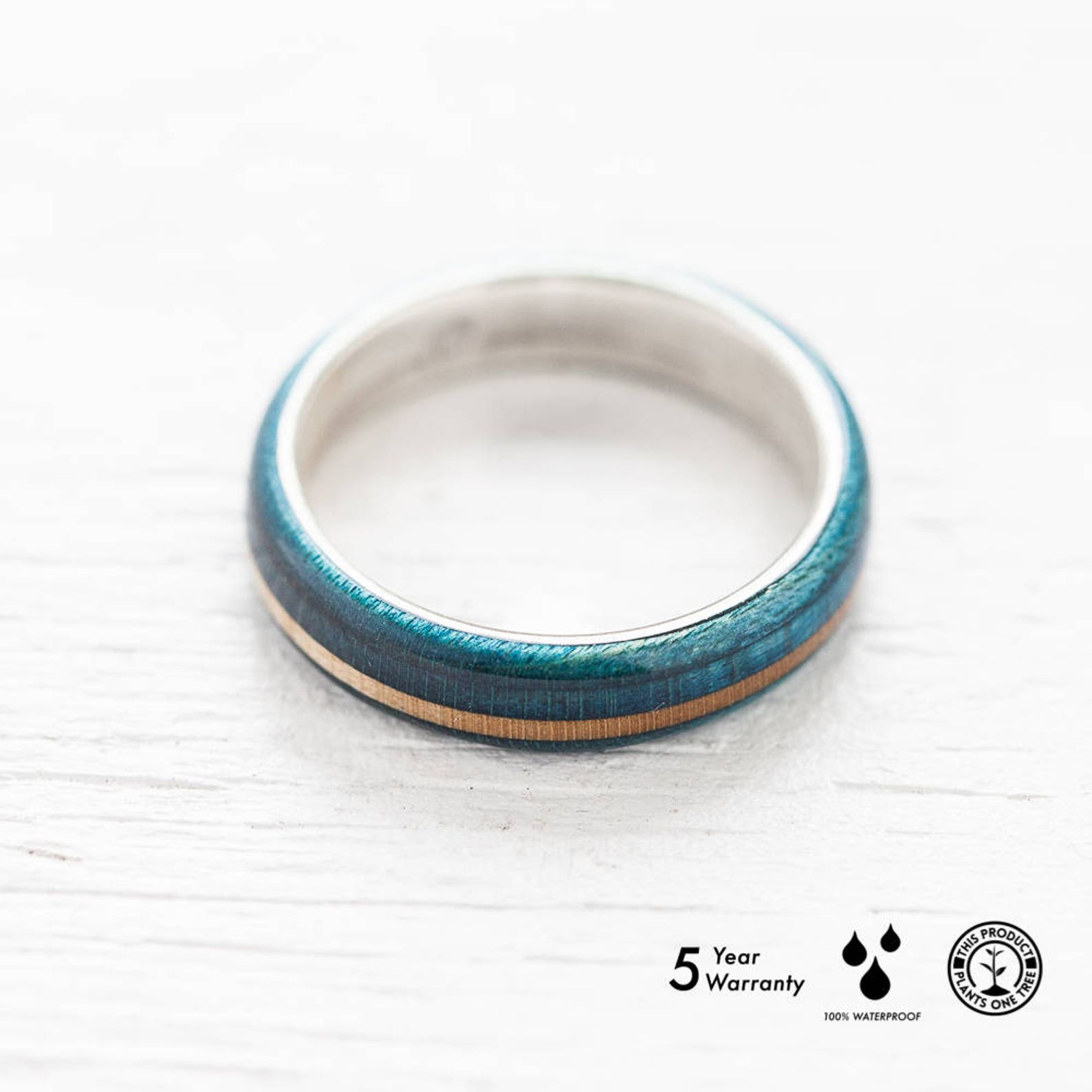 • Unsere Ringe bestehen aus recycelten Skateboards, kanadischem Ahornholz, Carbon und verschiedenen Metallen (Sterlingsilber 925, Gold 8 Karat, Gold 14 Karat, Titan).