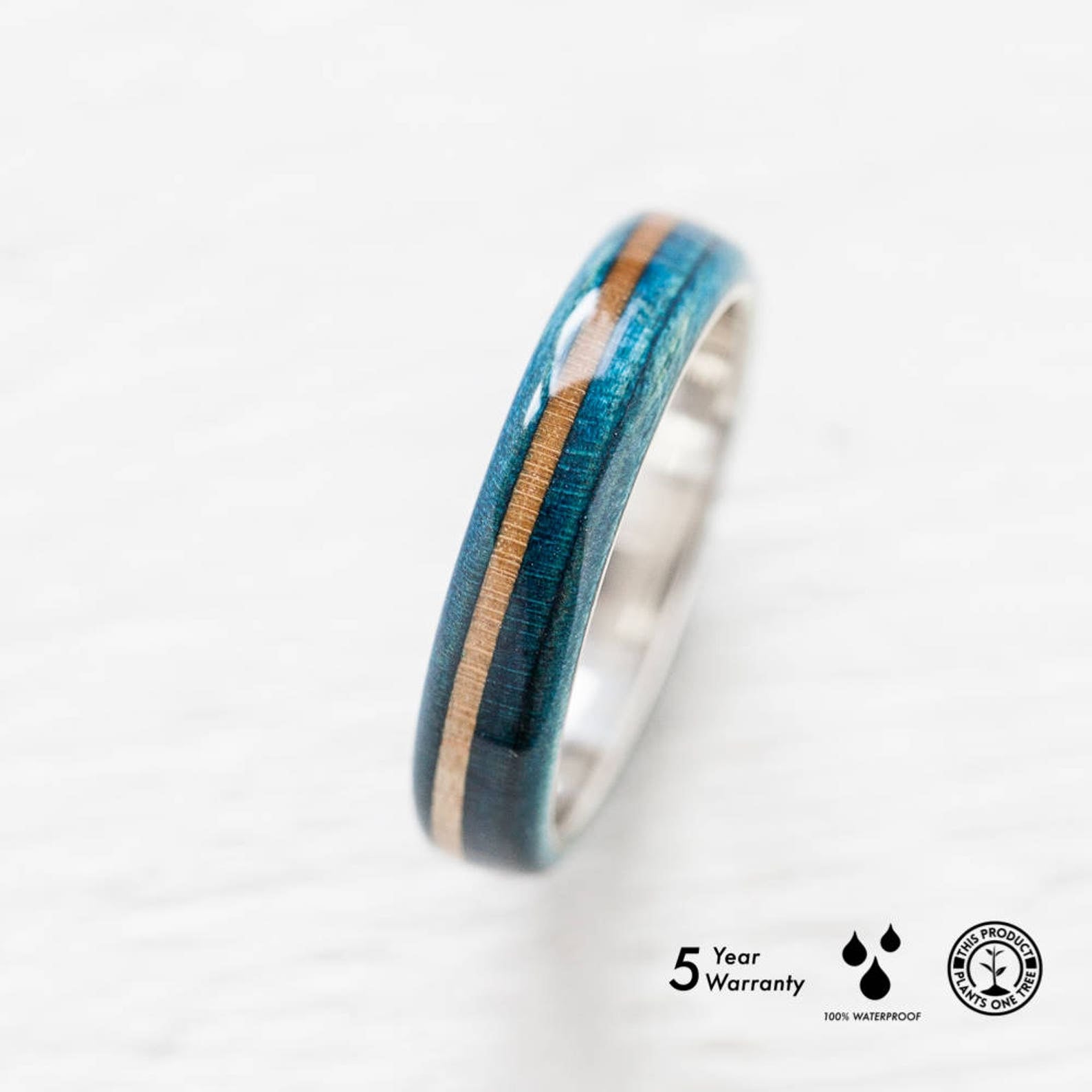 Titanium Turquoise Wooden Stripe Ring - BoardThing