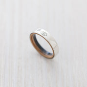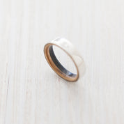 • Handgefertigter Silberring mit recyceltem Skateboardholz
