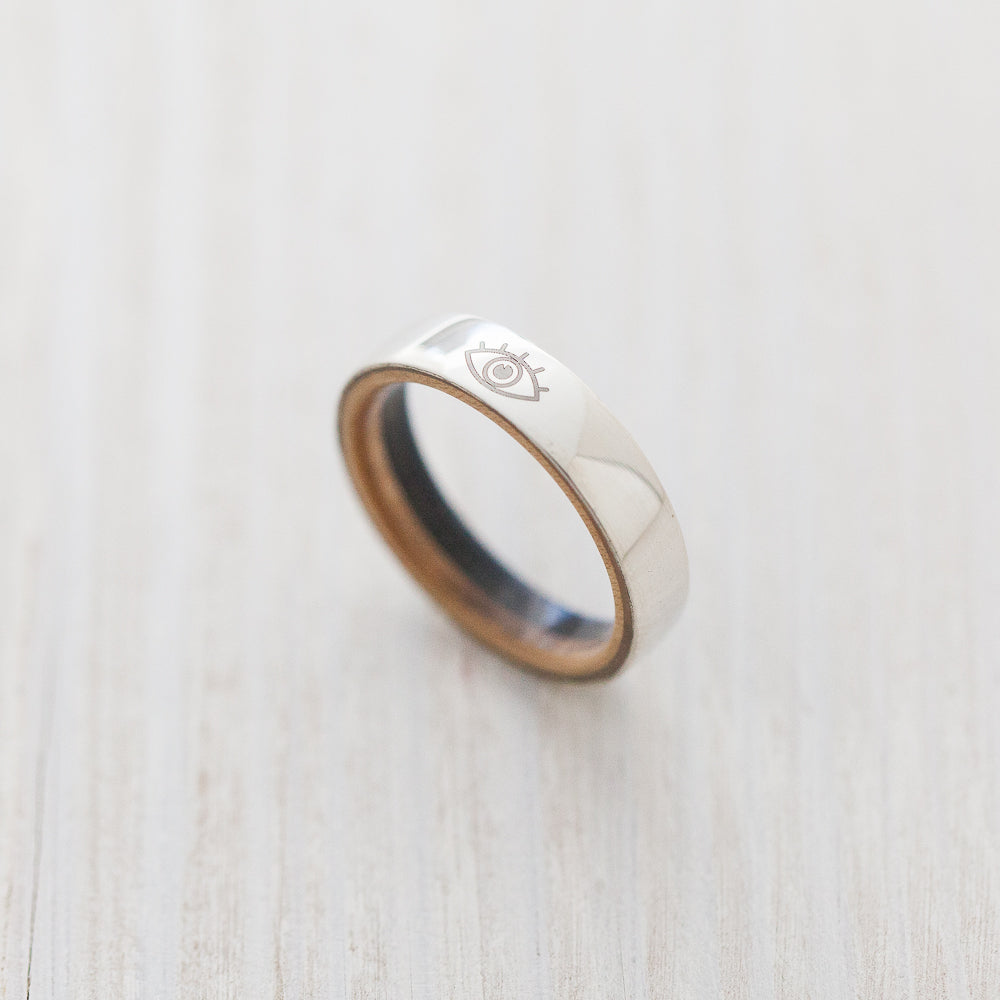 Recycled Skateboards Wooden Ring with Titanium - Eco-Friendly Handcrafted Jewelry - BoardThing