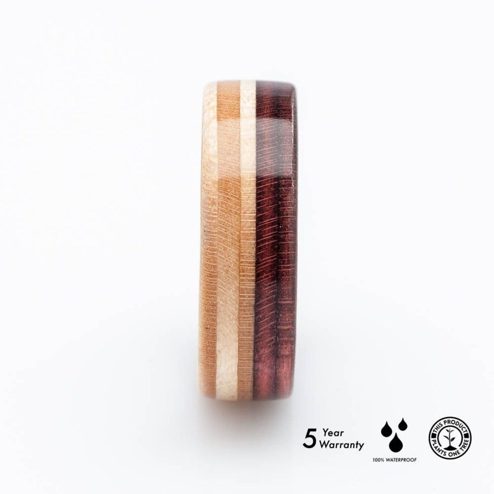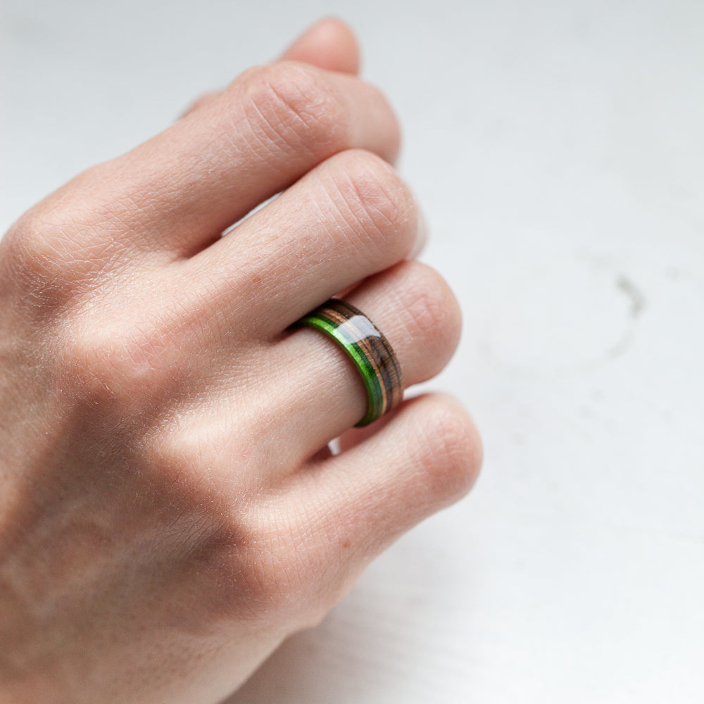 • Bague en bois de skateboard recyclé faite à la main